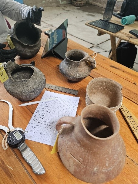 Entre los objetos arqueológicos documentados, se destacan instrumentos líticos (hachas, morteros, manos de moler) y vasijas cerámicas (platos, cuencos, ollas, tinajas, botellas, jarras y tinajones).